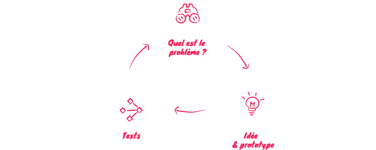Trois designers mobilisés — dont deux designers service et comportementaux — pour mener un travail de discovery in situ suivi d'un atelier d'idéation en septembre. Pas de solution préconçue. Pas de brief fermé. Le terrain d'abord, les idées ensuite, la formalisation pour finir.